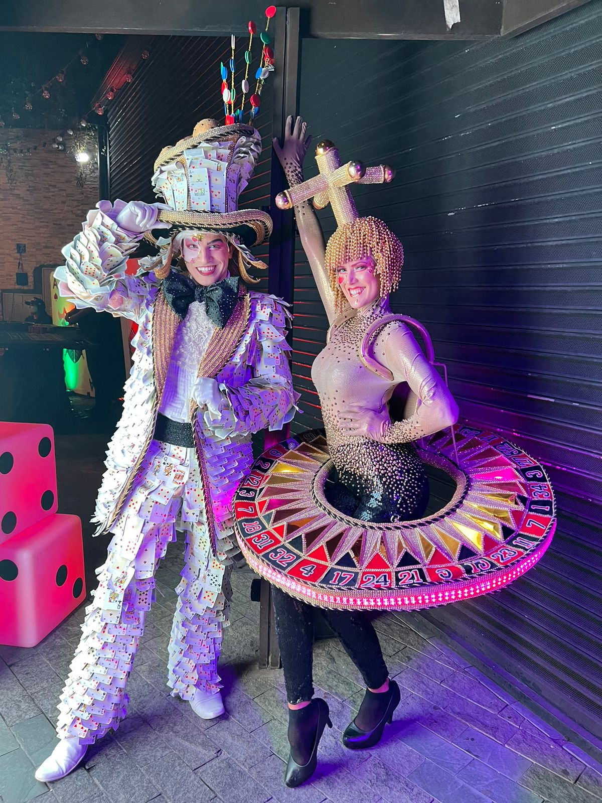 Com muito charme e glamour, o Casal Cassino traz a atmosfera dos grandes jogos de Las Vegas para qualquer evento! Vestidos com figurinos sofisticados e cheios de brilho, eles convidam todos a viver uma experiência única, repleta de diversão, magia e mistério. Perfeitos para transformar qualquer celebração em um verdadeiro espetáculo!