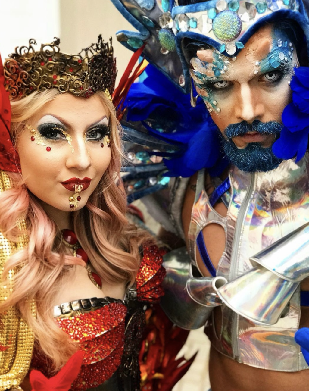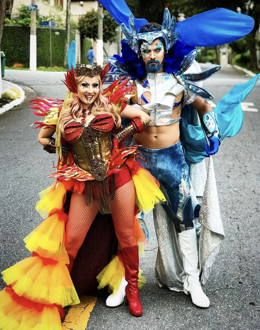 Dois elementos opostos que se completam em um espetáculo visual e encantador. O Casal Gelo e Fogo une o brilho gélido de um personagem elegante e cristalino com a intensidade ardente de um parceiro vibrante e flamejante. Juntos, eles dançam, encantam e representam a união perfeita entre extremos, com figurinos contrastantes, efeitos de luzes e movimentos sincronizados que remetem à batalha e à harmonia dos elementos. Um casal para impactar qualquer evento com beleza e presença cênica.