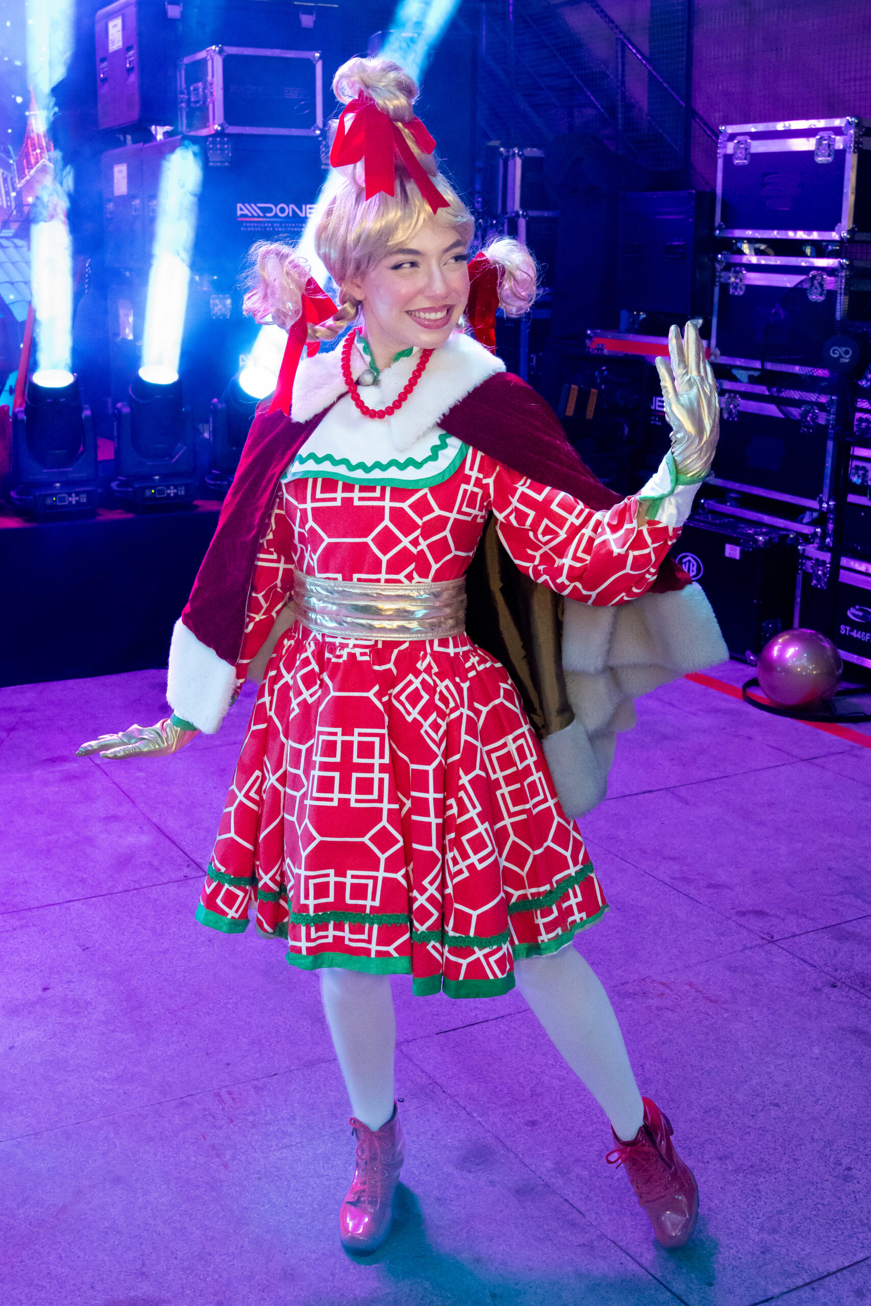 Doce, delicada e cheia de esperança, Cindy Lou Who representa o lado mais puro e encantador do Natal. Com seu olhar curioso e coração gigante, ela espalha gentileza, amor e a verdadeira mensagem natalina: acreditar na magia que nasce dos pequenos gestos. Uma personagem encantadora que emociona, acolhe e ilumina qualquer evento com ternura.