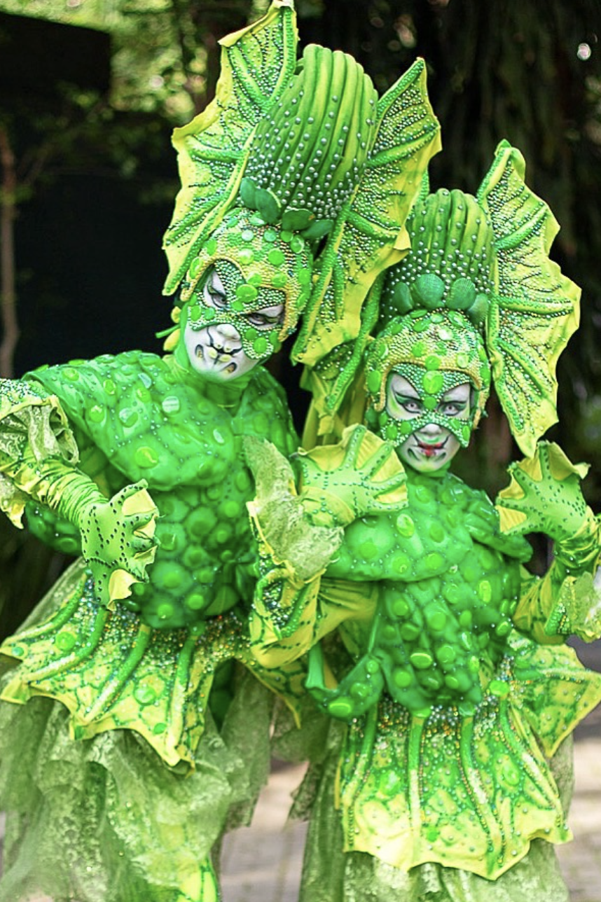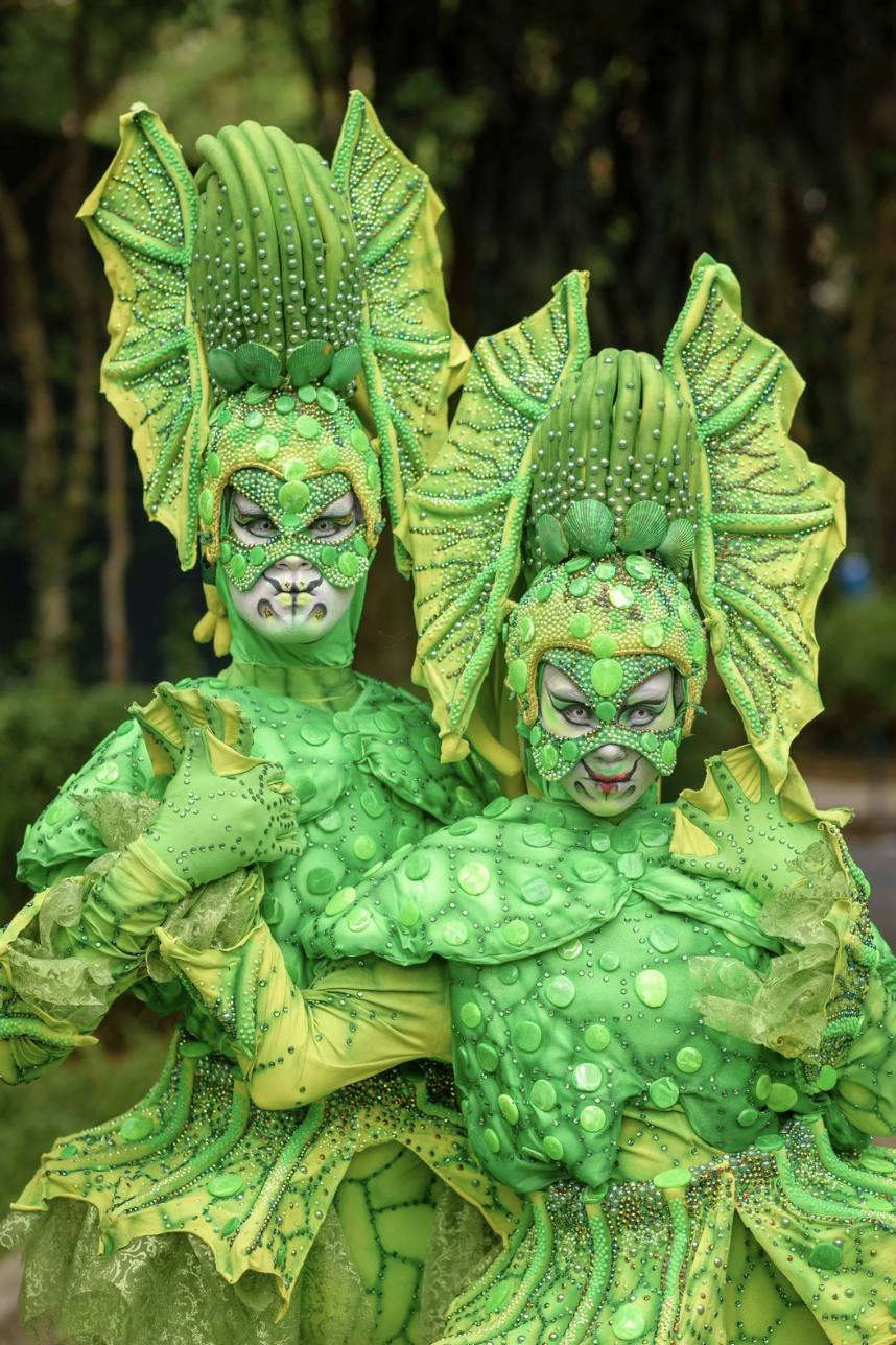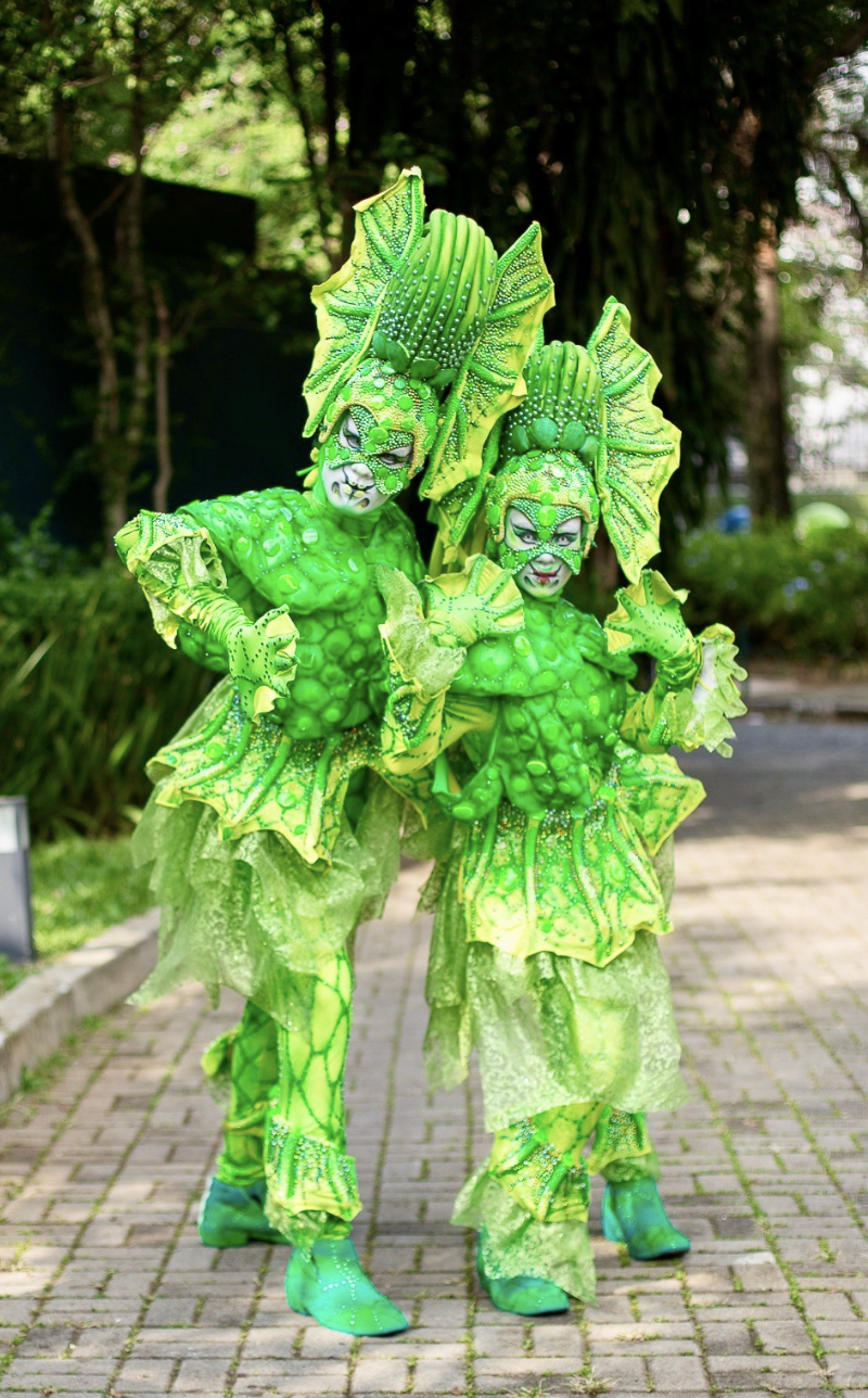 Do universo da natureza mágica ao fundo do mar encantado, os personagens Grilos e Aquáticos trazem frescor, cores vibrantes e muita imaginação aos palcos e eventos. Os grilos são saltitantes, espertos e cheios de ritmo, ideais para performances animadas e com muita coreografia. Já os aquáticos deslizam com elegância como se dançassem sob as ondas — representando peixes, cavalos-marinhos, polvos e outros seres marinhos.