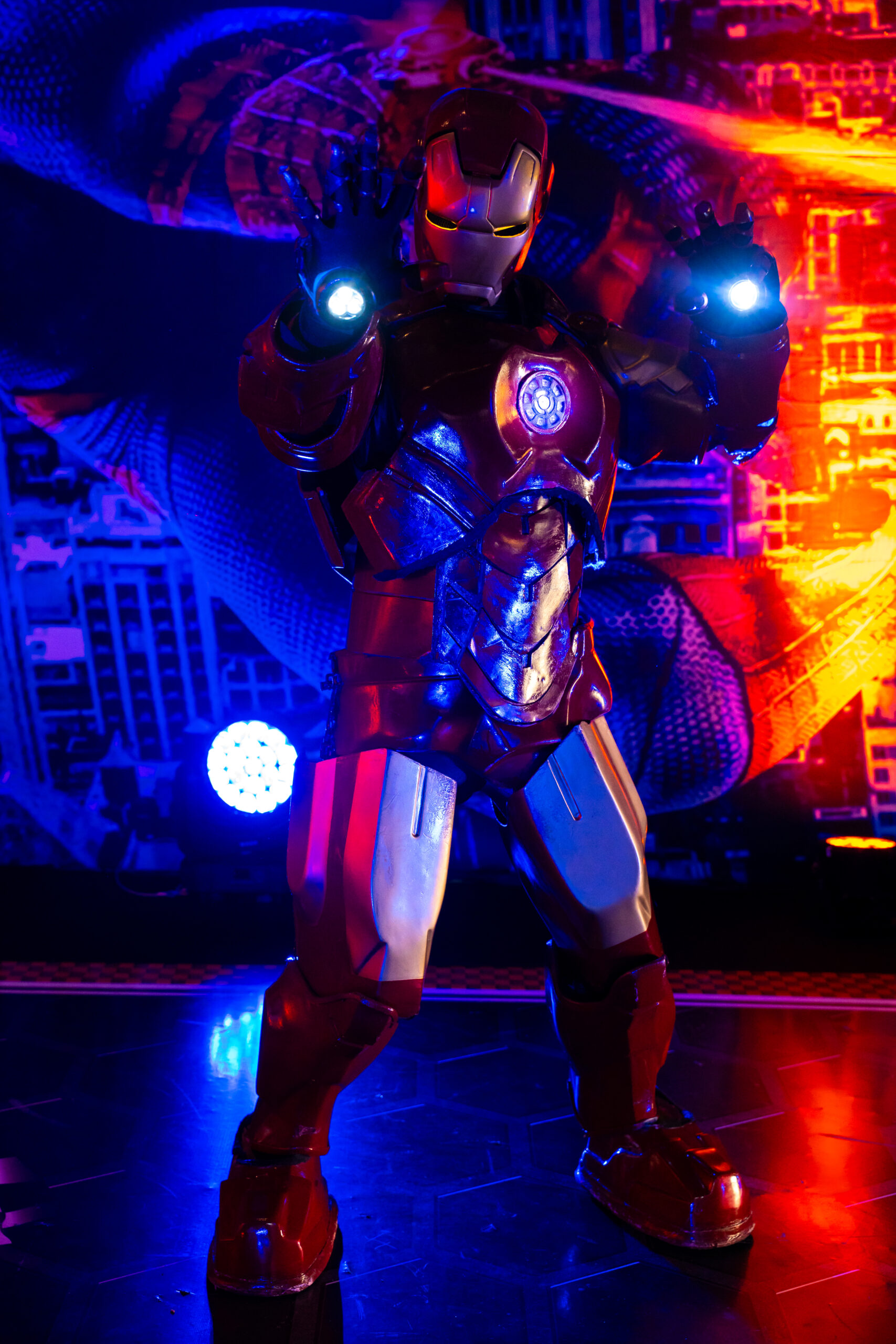 Direto do universo dos super-heróis, o Homem de Ferro chega com sua armadura icônica e presença poderosa para transformar qualquer evento em uma verdadeira missão heroica. Carismático, tecnológico e cheio de atitude, ele encanta fãs de todas as idades com poses épicas, interação e muita energia.