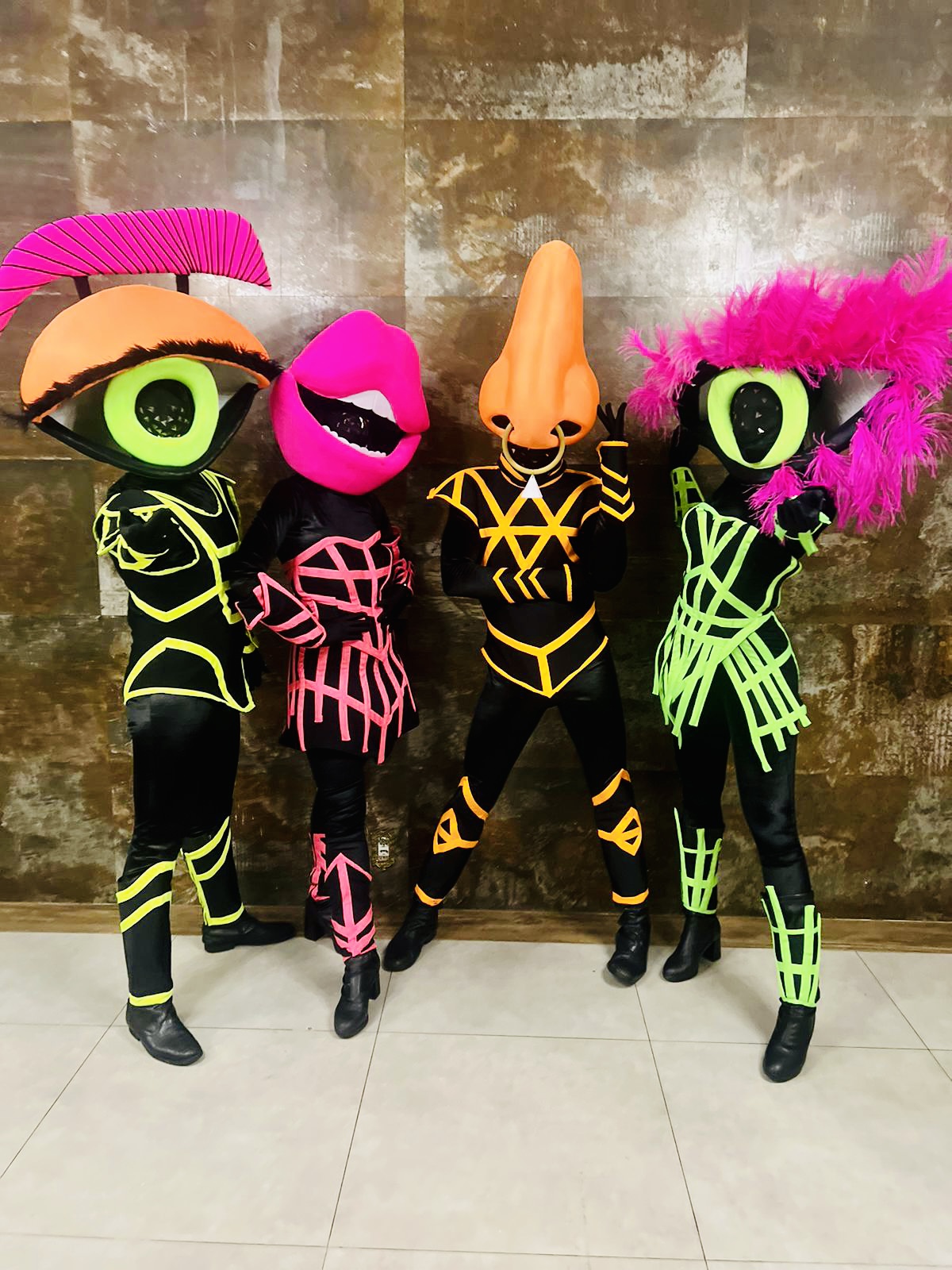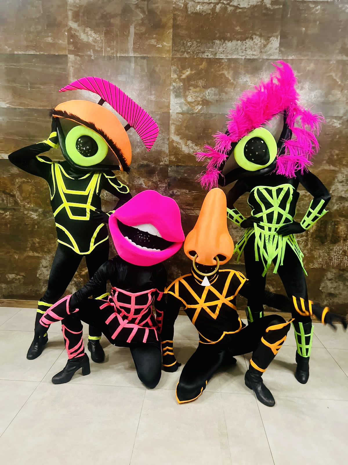 Diretamente do mundo futurista dos sonhos psicodélicos, eles são irreverentes, vibrantes e absolutamente inesquecíveis! As Neon Faces combinam luz, performance e atitude em visuais hipnóticos que parecem saídos de um universo paralelo. Prontos para invadir sua festa com energia máxima e muito impacto visual! 💥🌈